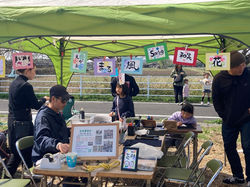 今年もサイクリングロード沿いに年に一度の花見会場を設置。